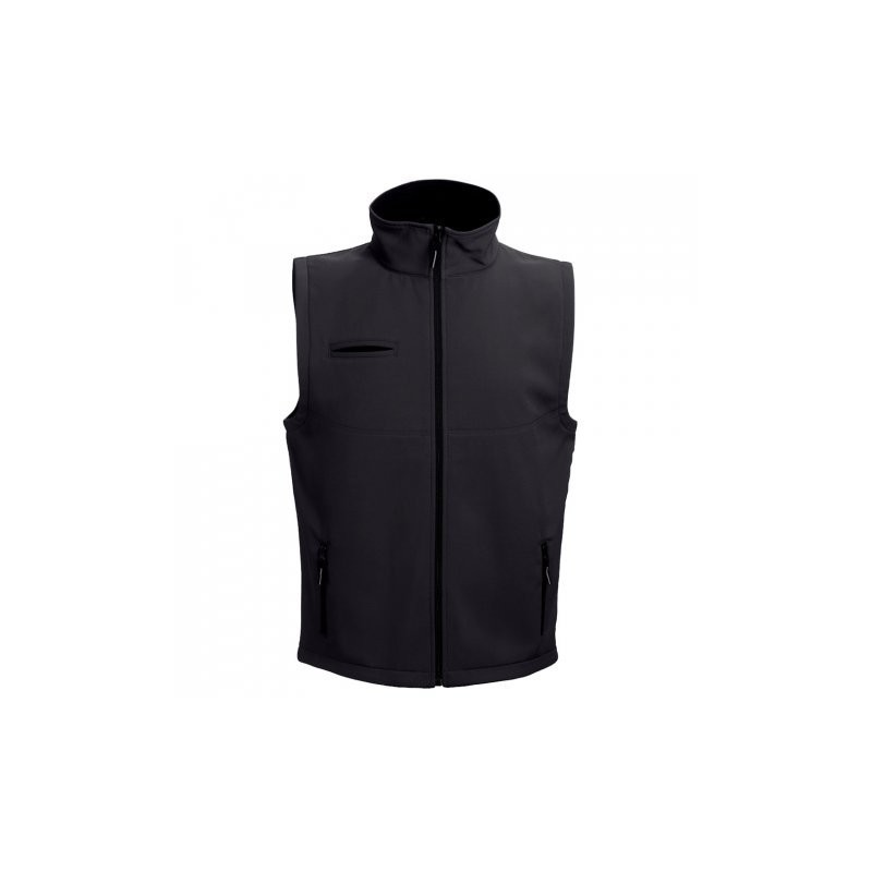 Chaleco de softshell unisex, compuesto por 96% poliéster y 4% elastano (2 capas): 280 g/m² con recubrimiento repelente al agua. Incluye 3 bolsillos: 1 bolsillo sencillo en el pecho y 2 bolsillos con cremallera. Parte inferior de la espalda más larga que la frontal. Zona de personalización con fácil acceso.