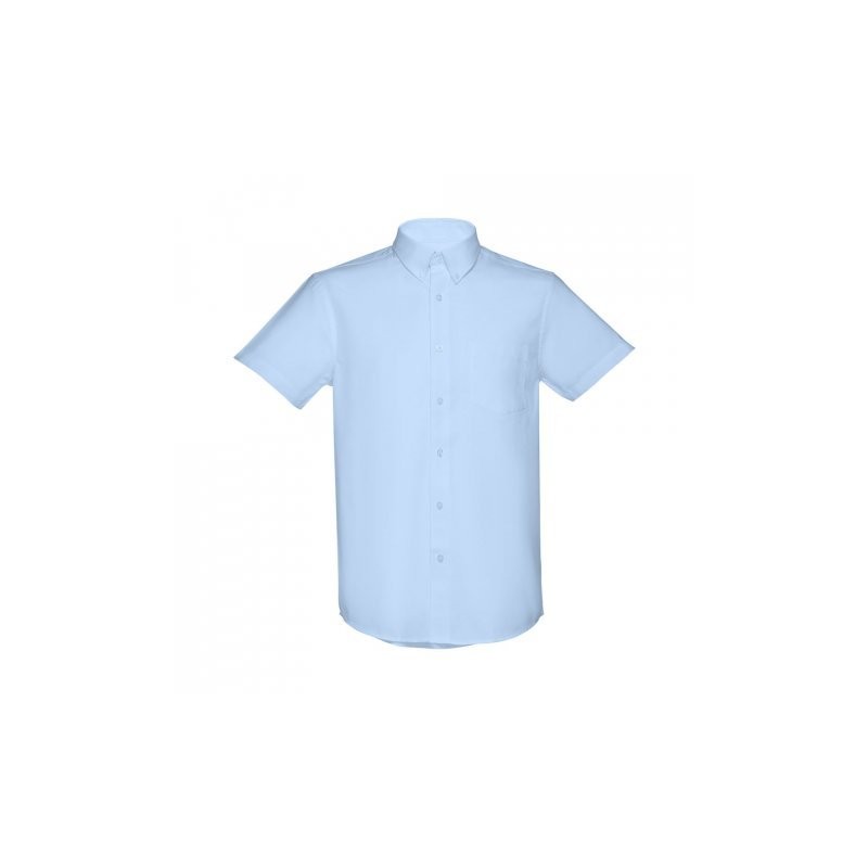 Camisa oxford unisex de manga corta compuesta por 70% de algodón y 30% de poliéster (130 g/m²) Incluye un bolsillo en el lateral izquierdo, cuello con 2 botones y tapeta con 7 botones color perla.