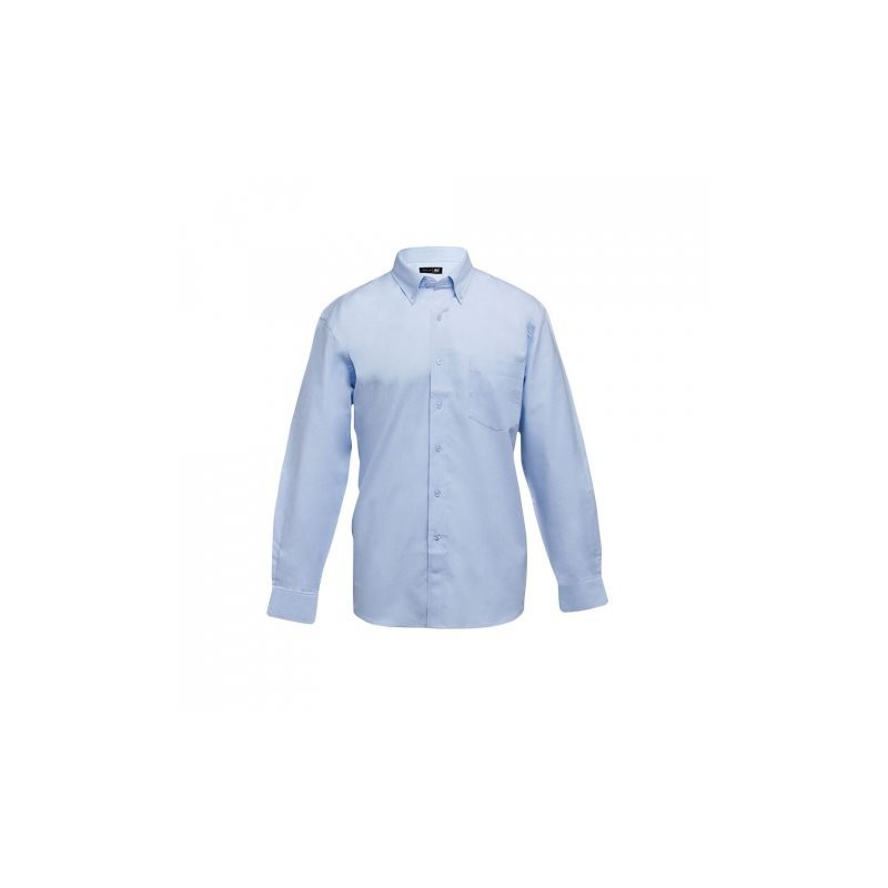 Camisa oxford de manga larga unisex compuesta por 70% de algodón y 30% de poliéster (130 g/m²). Dispone de puños ajustables con 2 botones, manga con 2 pliegues y bolsillo izquierdo en el pecho. El cuello de la camisa incluye 2 botones y la tapeta tiene 7 botones color perla (excepto en el modelo en negro).