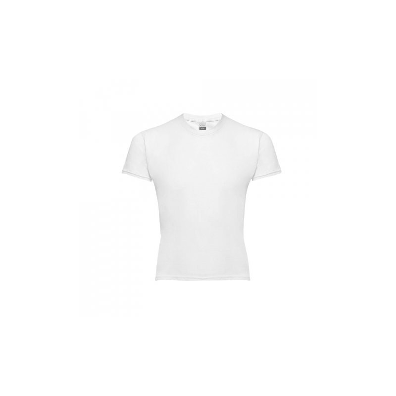 Camiseta infantil (unisex) en punto jersey de algodón 100% (150 g/m²), con hilo de algodón cardado y cuello con refuerzo de canalé 1x1. Pieza cortada y cosida con doble pespunte en mangas y bajo.