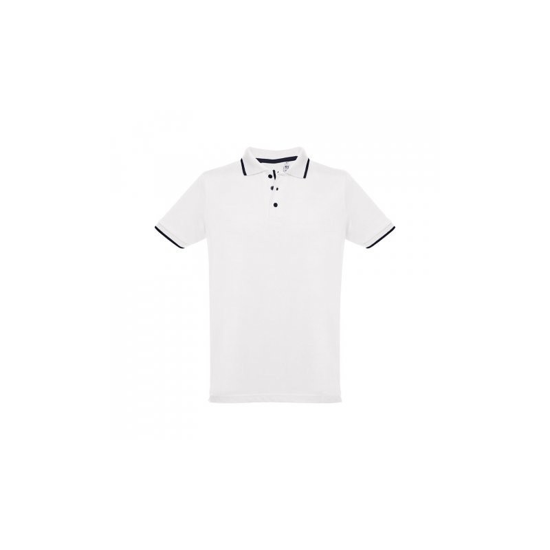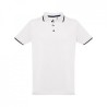 Polo bicolor de manga corta unisex en piqué de algodón 100% (210 g/m²) con contraste bicolor en cuello, manga y tapeta. Lleva tapeta reforzada con 3 botones a juego con los detalles del polo (botón de reserva insertado en la costura interior). Pieza de corte ajustado con pequeñas aberturas laterales en la parte inferior del polo.