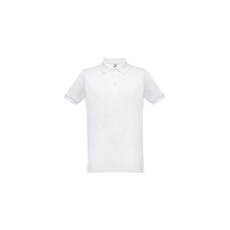 Polo de manga corta unisex compuesto por 65% de malla de piqué de poliéster y 35% de algodón cardado (200 g/m²). Es un polo con corte regular que incluye cuello y mangas rematadas con canalé. Además, el cuello está reforzado con cinta de piqué y contiene tapeta reforzada con 3 botones a juego con el color del polo (botón de repuesto insertado en la costura interior). Pieza cortada y cosida.