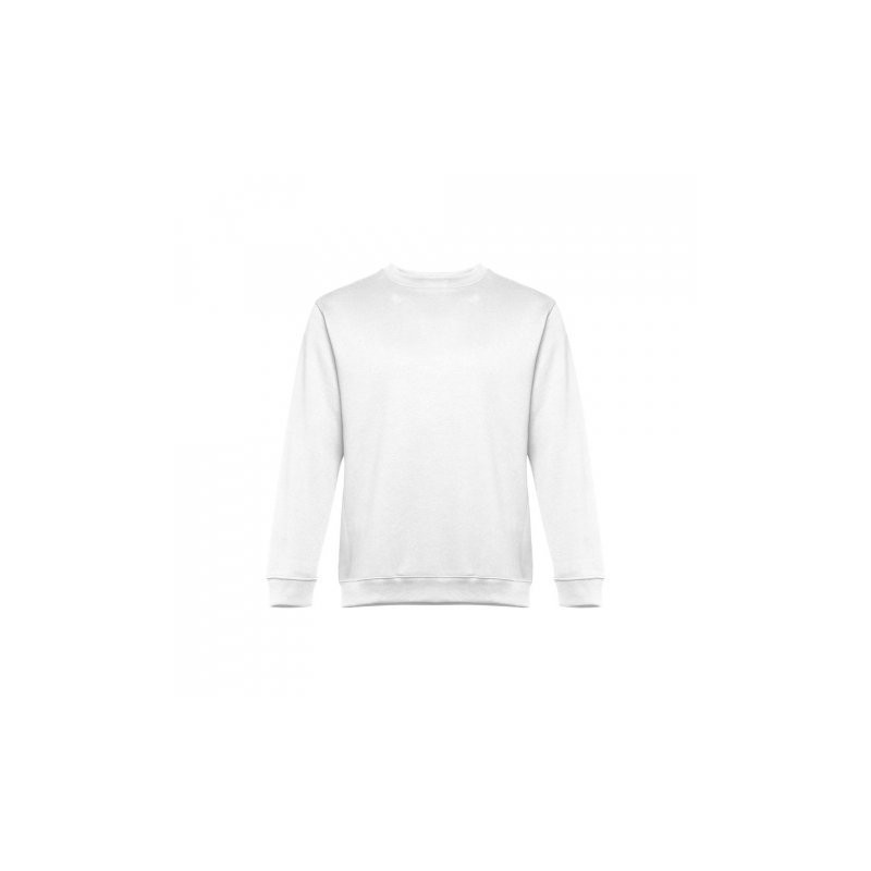 Sudadera unisex compuesta por 50% algodón y 50% poliéster (300 g/m²). Incluye el interior cardado, cuello, puños y bajo rematados con canalé de doble costura y cinta de refuerzo en el cuello.
