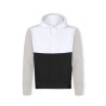 Sudadera unisex tricolor con capucha. Bolsillo canguro y elásticos de ancho extra para un ajuste perfecto. Confeccionado en mezcla de algodón y poliéster con un gramaje de 280g/m2. Interior de felpa cepillada para una mayor sensación de calidad. Tacto suave y corte moderno. Cordones ajustables planos y ojetes de confección, evitando así el uso de metal. Dobles costuras para una mayor durabilidad y resistencia al uso intensivo. Etiqueta fácilmente removible. Disponible en tallas XS, S, M, L, XL y XXL.