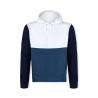 Sudadera unisex tricolor con capucha. Bolsillo canguro y elásticos de ancho
